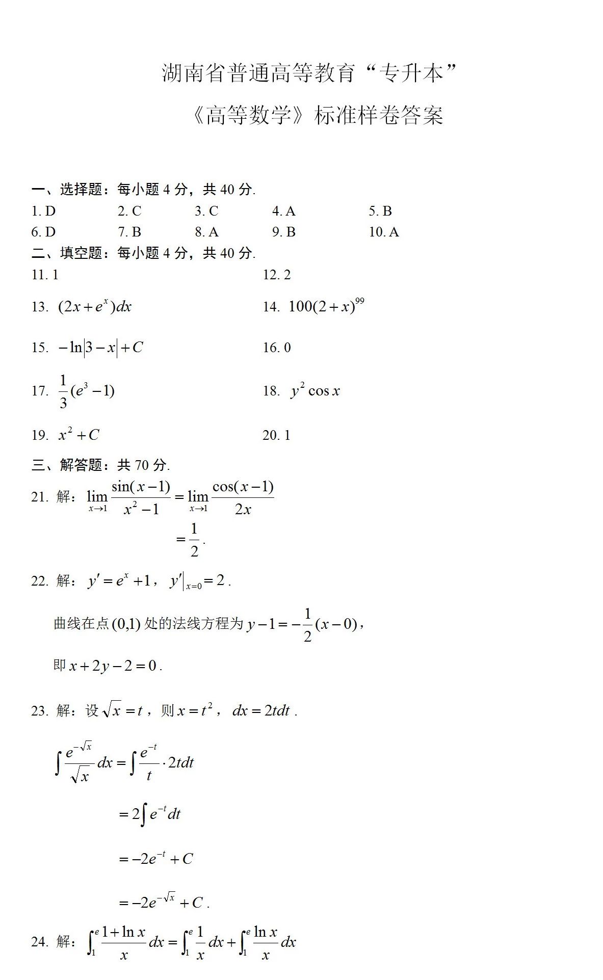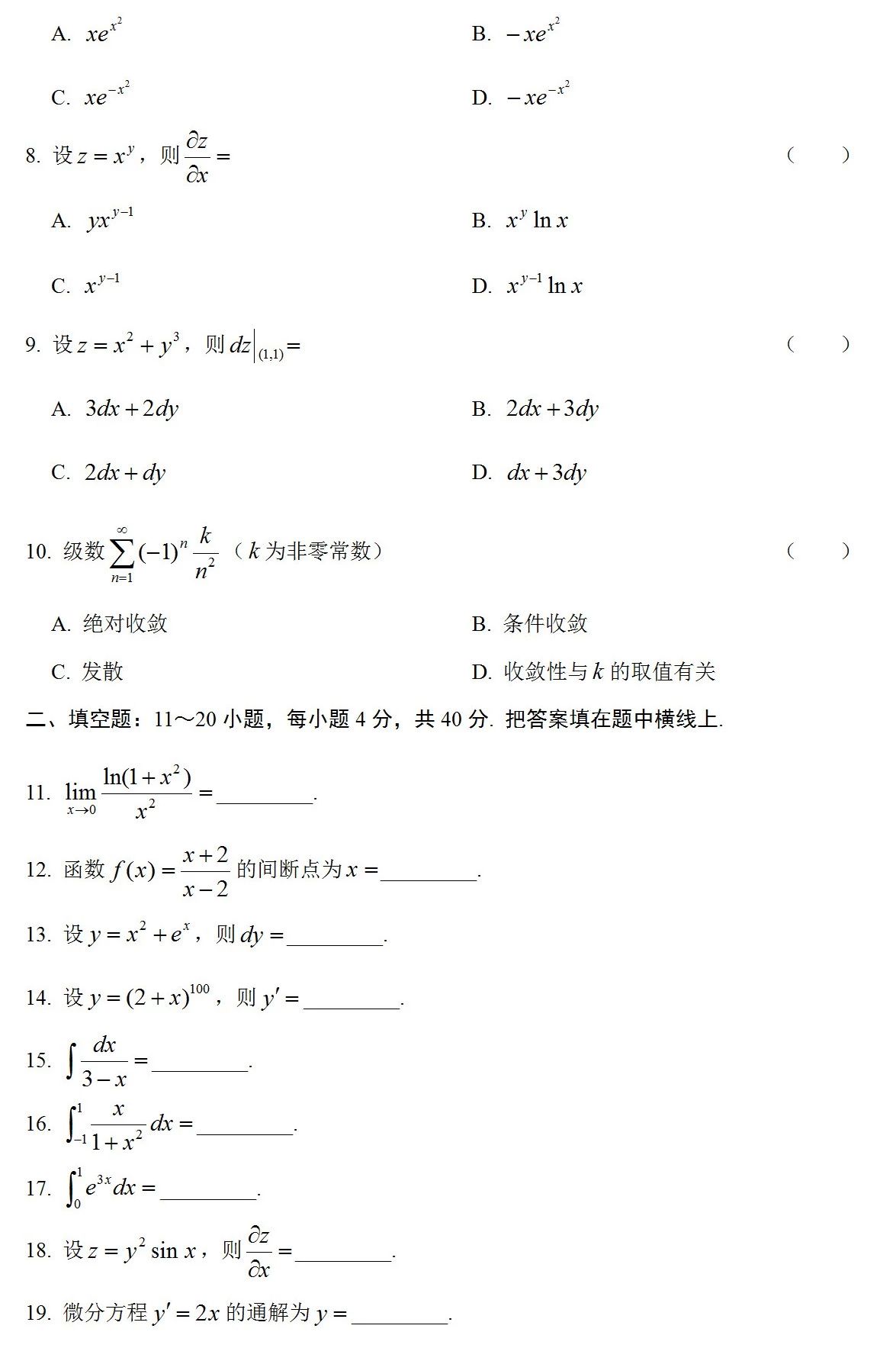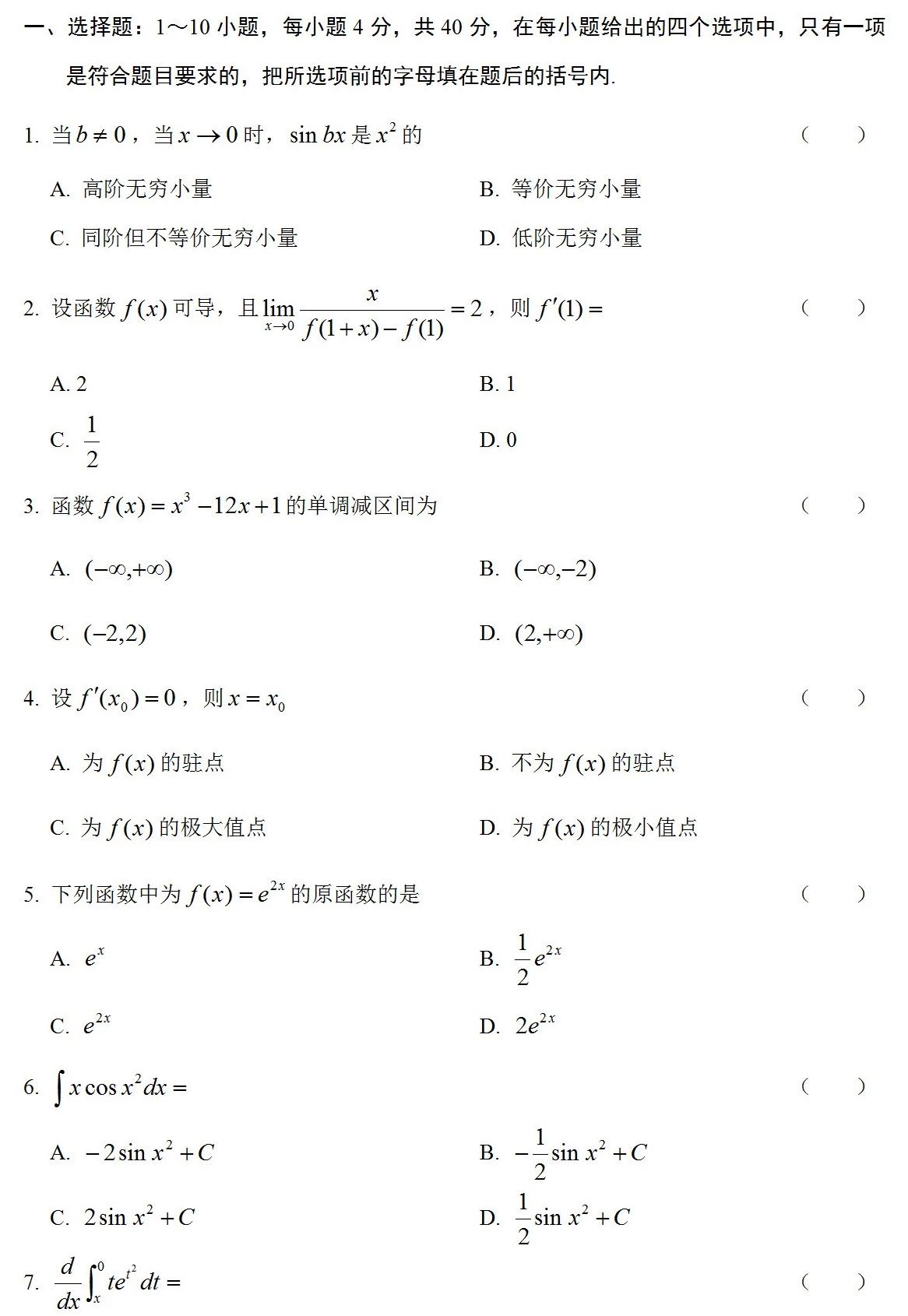《高等数学》标准样卷